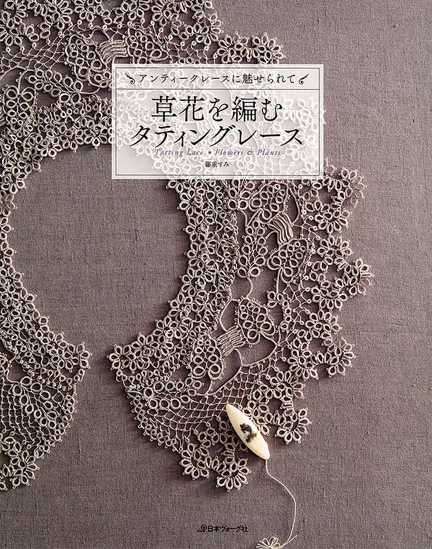 花や葉のモチーフを組み合わせた衿やドイリーの上級者向けと、ひとつのモチーフのくり返しでできる簡単なイヤリングやネックレスなど、アンティークレースからインスピレーションを受けた作品約30点を掲載。すべて#40相当のレース糸で編んでいます。型紙つき。