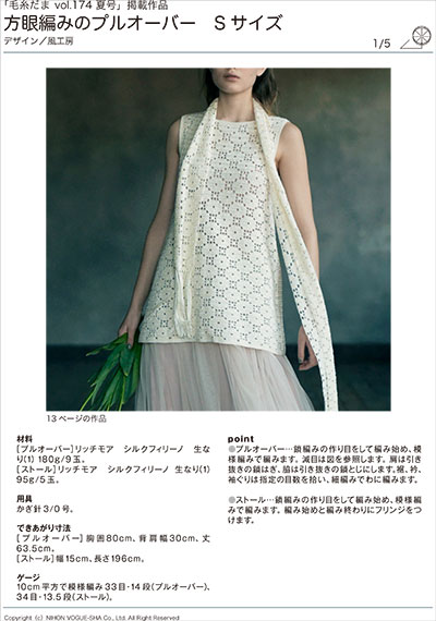 編み図【配送】 方眼編みのプルオーバー (Sサイズ)