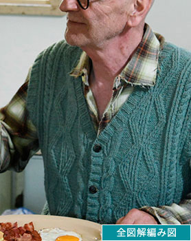 全図解編み図【配送】 メンズ前あきベスト