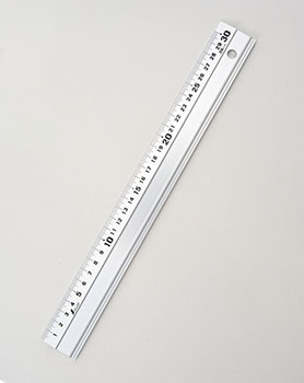 カルトナージュのサイズ調整など、カッターを使用する際に便利なアルミ製の定規。