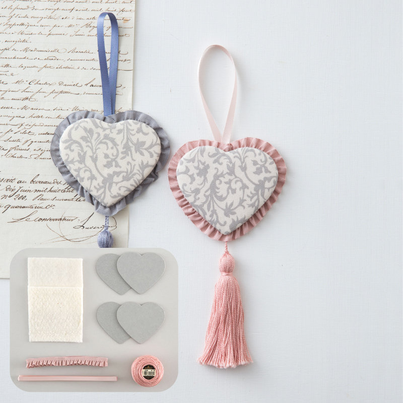 シックな色合いのフリルレースとタッセルをプラスしたハート形のオーナメントキット。