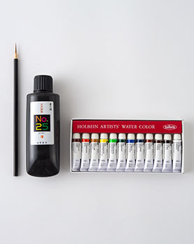 村西恵津さんの『モダン絵てがみ』におすすめの透明水彩絵の具と墨液、筆のセットです。【This item does not ship to overseas.】
