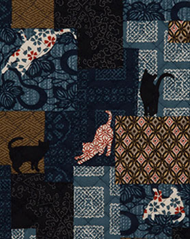 【キルティング】綿が入ったキルティング済みの布です。バッグの他、座布団カバーやこたつカバー、マットなどに。藍風のネコ柄がおしゃれです。