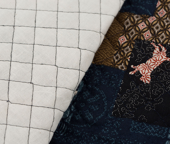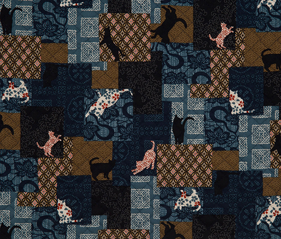 【キルティング】綿が入ったキルティング済みの布です。バッグの他、座布団カバーやこたつカバー、マットなどに。藍風のネコ柄がおしゃれです。