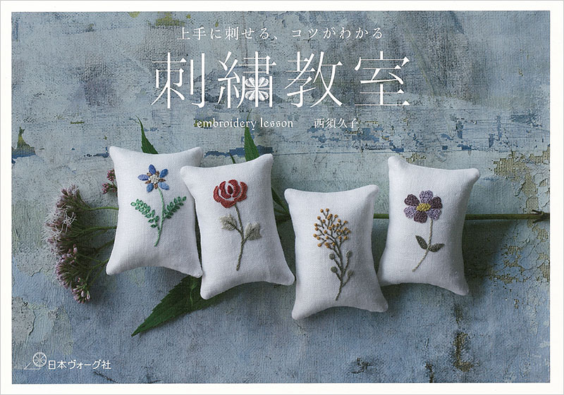 This title introduces the tips that previous books didn’t show; such as how to stitch a neat corner with chain stitches, and the tips for a long and short stitch, French knot stitch, or bullion stitch. Learn 20 tricky points that especially those who taught themselves tend to find difficult, while stitching botanical patterns. Presents photos of the projects and how to stitch in facing pages, so that you can see the photos and make a stitch at the same time. This is the “basic” book but is also great for experiencers to improve. Attached a DMC needlework thread #25 colour card.