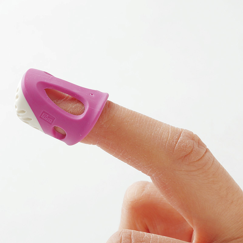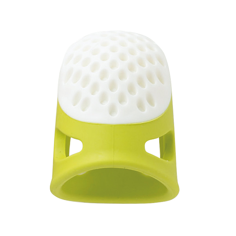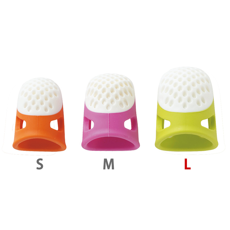針があたる部分は、耐久性に優れた強固なプラスチック製、側面部はフィット感のよいソフトラバー製。通気性を考えた設計で、針を使う手・受ける手両方に使えます。