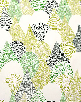 バッグのほか、スカートやパンツなどのウエア類、テーブルクロスなどのインテリア小ものなど、幅広い用途に使えます。やわらかな森の色合いを点描の濃淡で描いた人気のデザインです。通気性よく織りあげたオックス地。お求めやすい10㎝単位での販売です。
