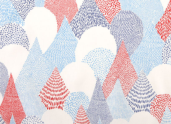 バッグのほか、スカートやパンツなどのウエア類、テーブルクロスなどのインテリア小ものなど、幅広い用途に使えます。やわらかな森の色合いを点描の濃淡で描いた人気のデザインです。通気性よく織りあげたオックス地。お求めやすい10㎝単位での販売です。
