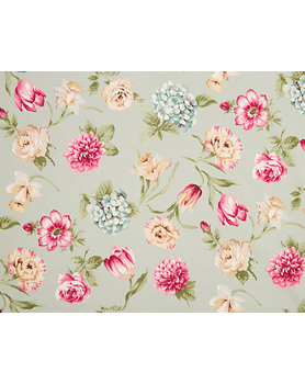 パステルグリーンのベースに身近な花々をプリント。好きな花を組み合わせても、そのままでも上品な雰囲気が楽しめます。
