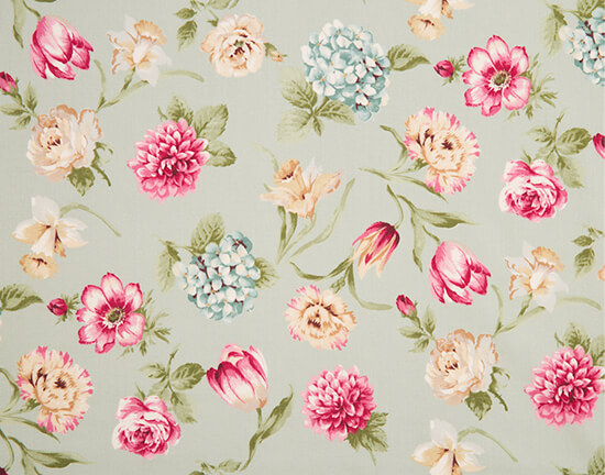 パステルグリーンのベースに身近な花々をプリント。好きな花を組み合わせても、そのままでも上品な雰囲気が楽しめます。