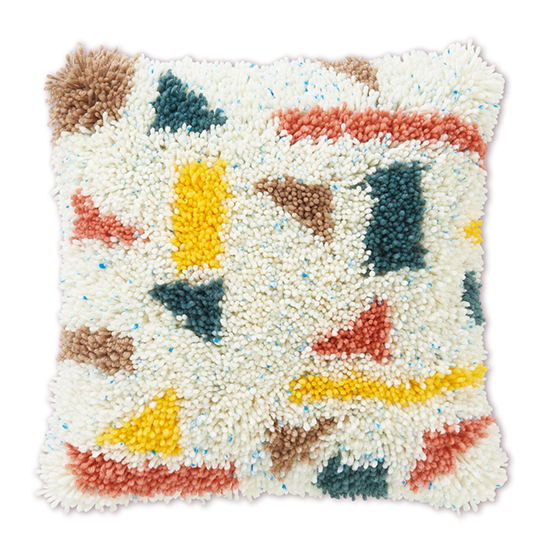 詳しい使い方と、ラグ・タペストリー・クッションカバー・コースターの説明書つきです。毛糸を均等な長さにカットできるヤーンゲージもセットで。
