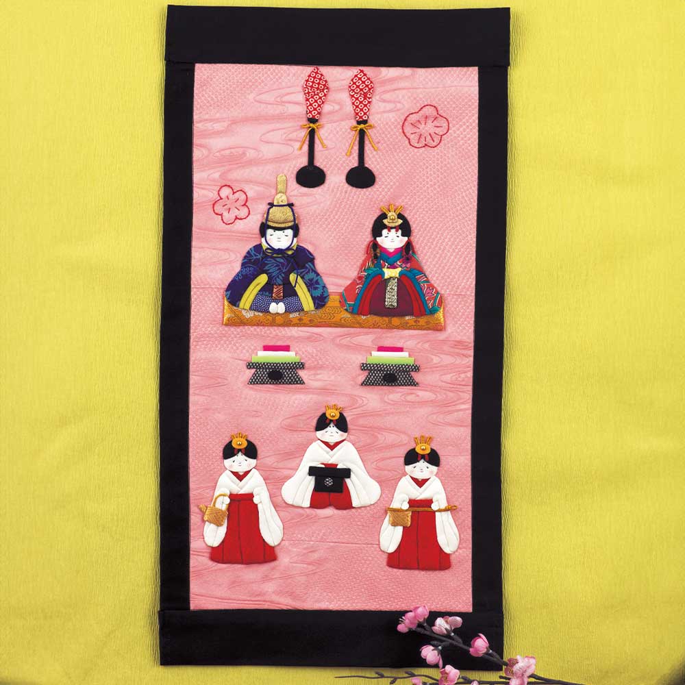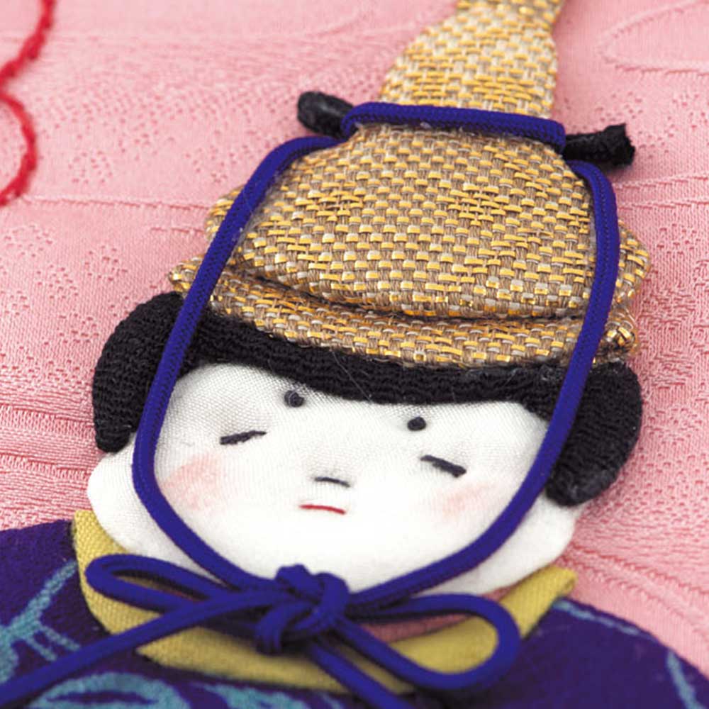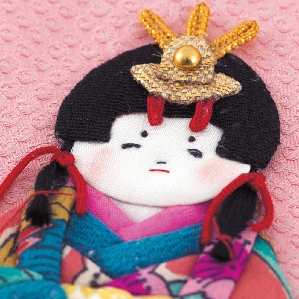 【キット作り方つき】【古裂】 穏やかな表情のおひなさまと官女たち。着物の重なりや髪飾りなどを、押し絵でリアルに再現しています。 ※古裂は古い着物をほどいて作るため、写真とまったく同じもののお届けは出来ません。