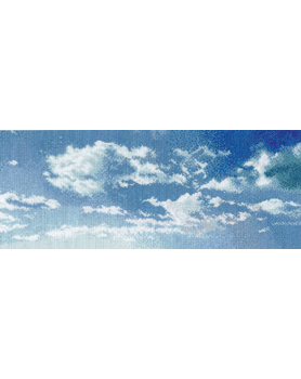 【キット作り方つき】人気のテア・グーヴェルヌールさんデザイン。青く澄み渡る空が、お部屋を清々しく彩ります。同色の濃淡でほぼ全面を刺す、手応えたっぷりの上級の方向きクロスステッチ作品です。