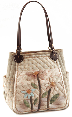 本体に縫いつける部分がハートのようにふくらんだ形の本革持ち手。可愛らしい作品にぴったりです。