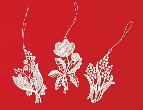 一つ一つ丁寧に作られた繊細な美しさが魅力の、ドイツ・プラウエン産のレースセットです。飾りとして、作品素材として楽しめます。可憐な3種の花をモチーフにしたタイプです。