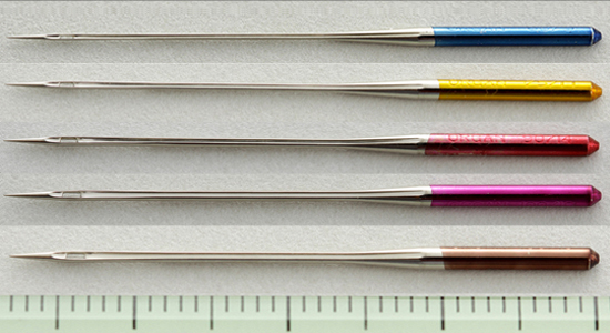 家庭用ミシンで使用するミシン針(5種)をセットにしました。布地に合わせて針をお選びください。