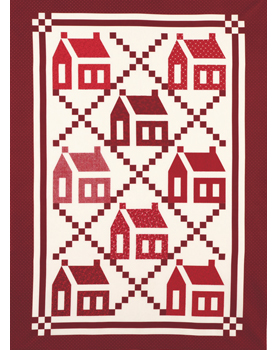 伝統的なスクールハウスのキルトパターンをプリントしたパネル柄。 白いラッカーでキルティングラインがプリントされています。