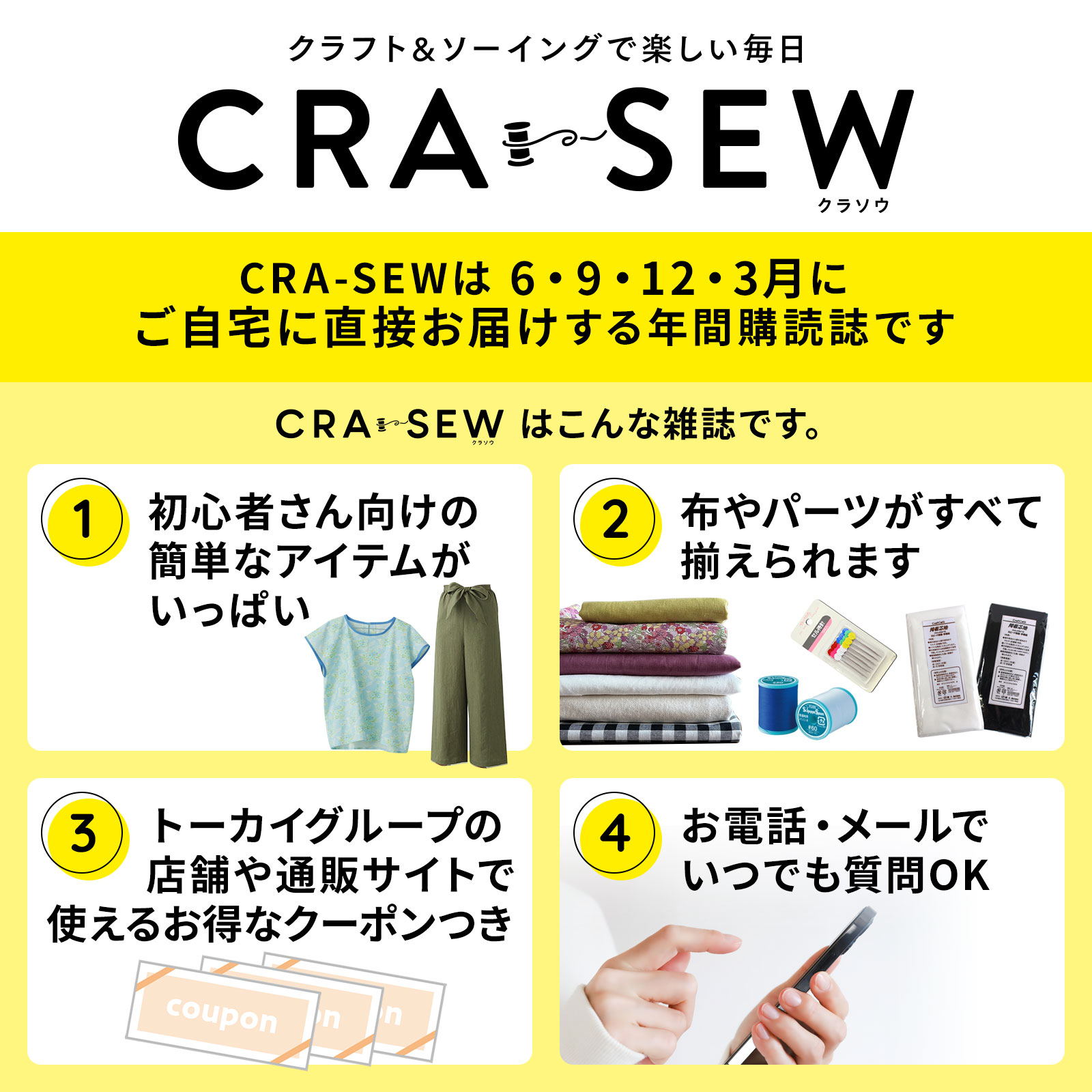 年4回(3,6,9,12月)発行の定期刊行誌。「CRA-SEW(クラソウ)」はクラフトとソーイングの造語。