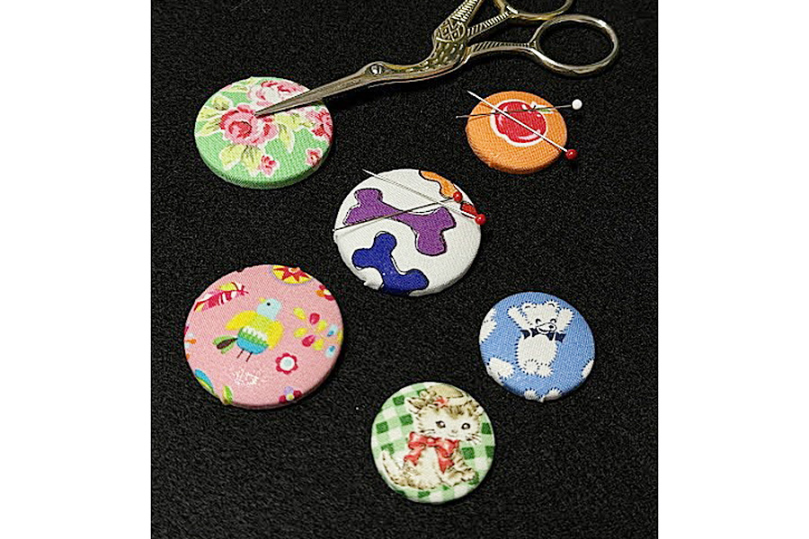 机に置いてもちょこんとかわいい小さなピンクッションを、お好みの生地で作れるワークショップです。