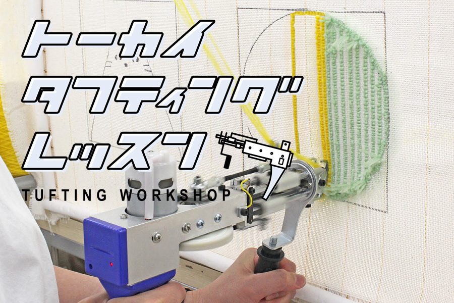 タフティングガンという専用の器具を使い、ベースとなる布に絵を描くように糸を打ち込んでいきます。