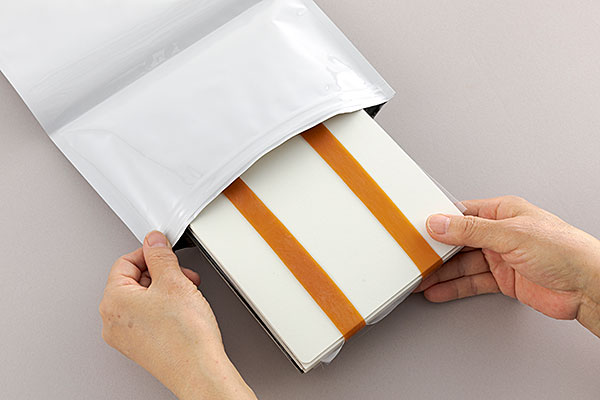 7ゴムバンドで固定しアルミチャック袋に入れます。