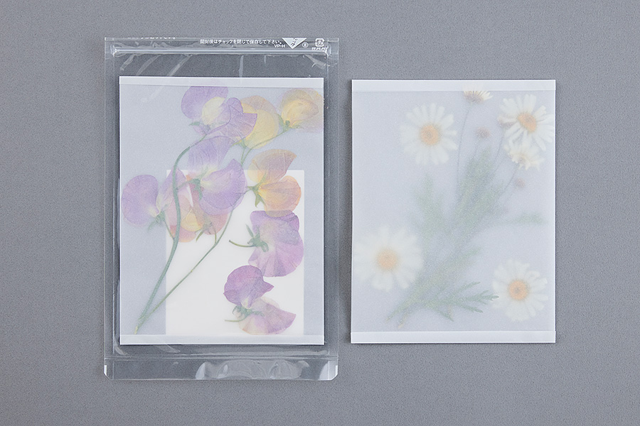 ・押し花をトレーシングぺーパーや、和紙、ティッシュなど中が透けて見えるものではさむと良いです。
