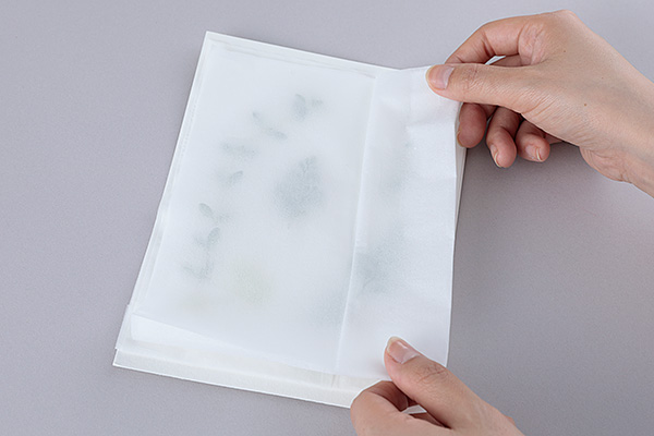 1ドライシートの上にティッシュペーパーを敷き、その上に植物を置きます。