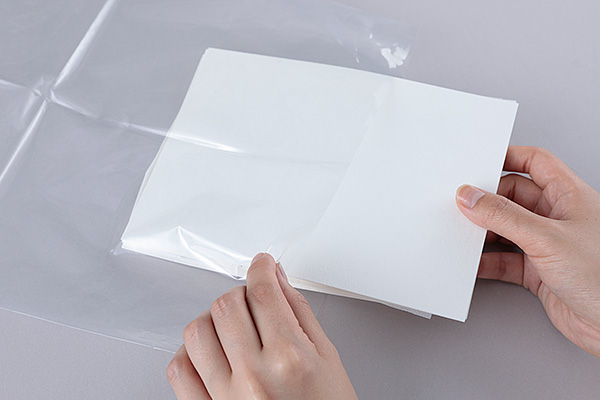 4ビニール袋に入れ、袋の中の空気を出しながら袋を折ります。