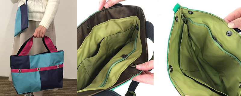 バイカラーで作るバッグセットは、3色から好きな色を選べます